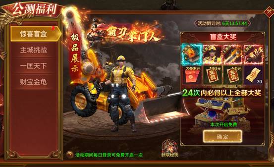 免费次数消耗完毕后,可使用惊喜秘钥开启盲盒,惊喜秘钥可在主城挑战及一匡天下活动中获得